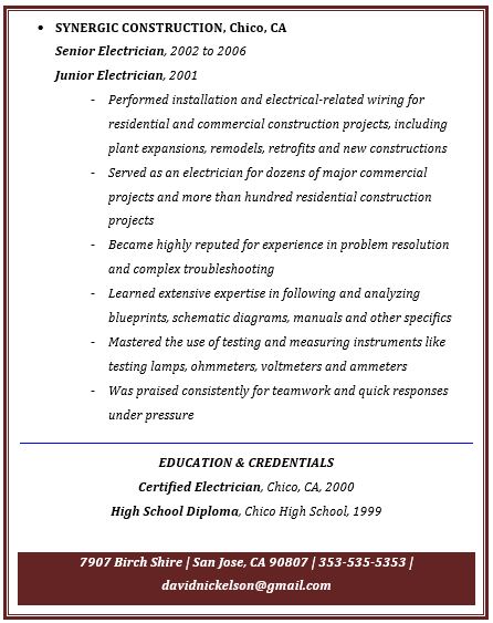 - The ability to work with electricity is crucial, therefore incorporating references from satisfied employers is a great way to boost your resume’s credibility.